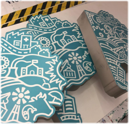 Cartelería corpórea y plana.Dispositivos interactivos personalizados.Materiales: polifán, acrílicos, aluminio compuesto,aluminio, macizo, chapas de acero y acero inoxidable.